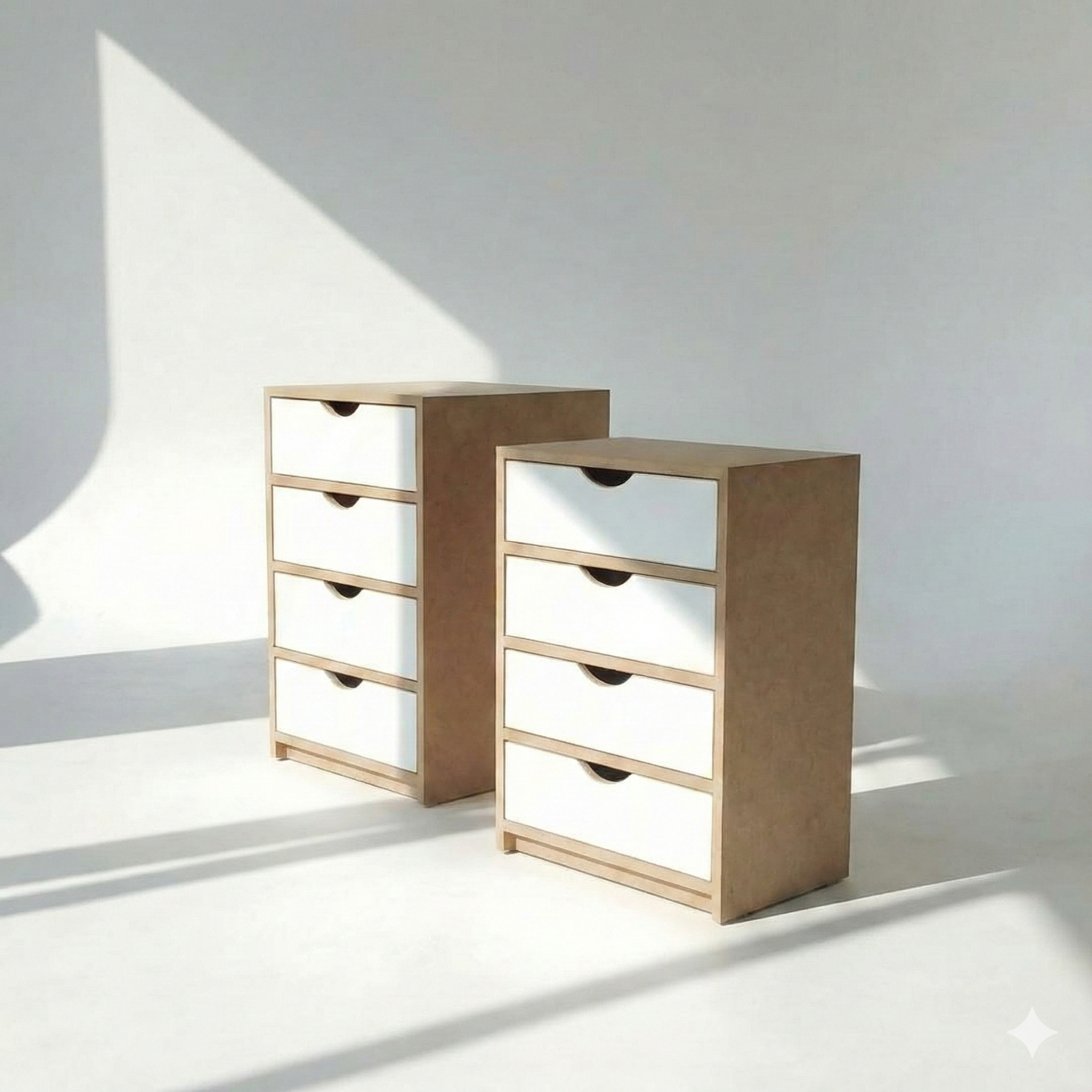 Esta cajonera es la combinación perfecta entre funcionalidad y estilo moderno. Diseñada específicamente para optimizar el interior de tu vestidor o placard, ofrece una solución de guardado amplia sin sacrificar la estética. Su diseño de líneas puras y el contraste entre la calidez de la madera natural y el blanco puro la convierten en una pieza versátil que se adapta a cualquier decoración.