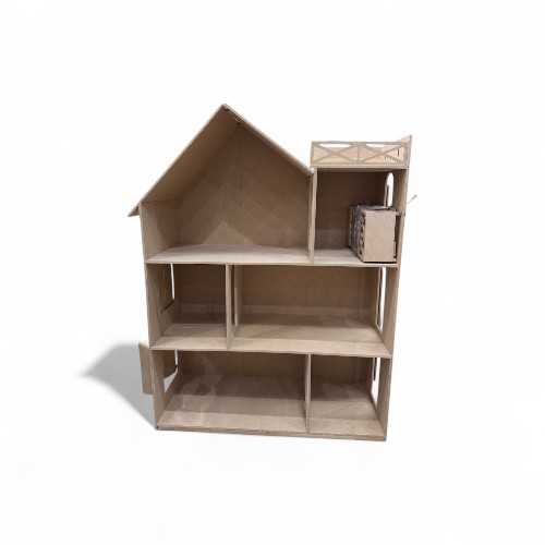 Una casa para muñecas con mucha presencia. Sus tres pisos, balcones y terraza superior ofrecen distintos espacios para ambientar y jugar. Es perfecta para niñas que disfrutan del armado y decoración de interiores. Su diseño abierto facilita el acceso desde el frente y los laterales.