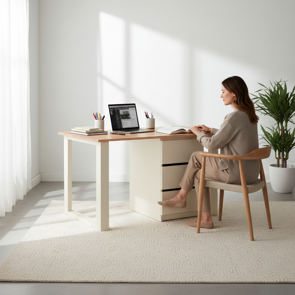 Estructura Sólida: Base y cajonera en Melamina Blanca de 18mm de alta densidad.