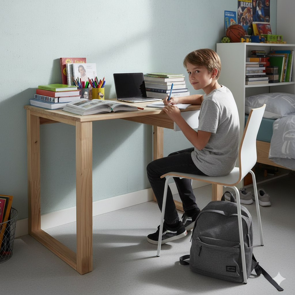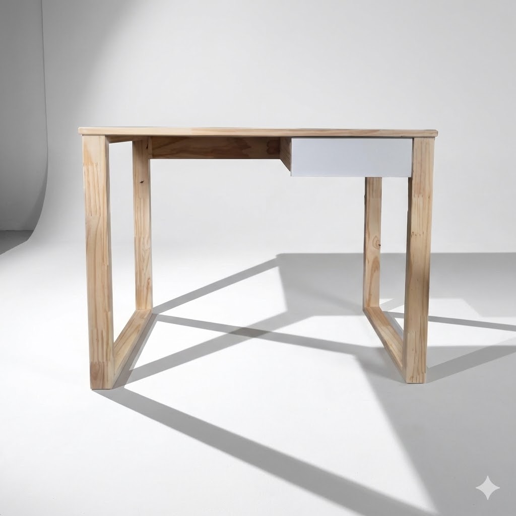 Este escritorio combina la calidez del pino nórdico natural con la limpieza visual de la melamina blanca, logrando una pieza funcional y estética para cualquier espacio. Cuenta con una estructura sólida y minimalista, y un cajón integrado ideal para guardar elementos esenciales, mantener el orden y trabajar con más comodidad.