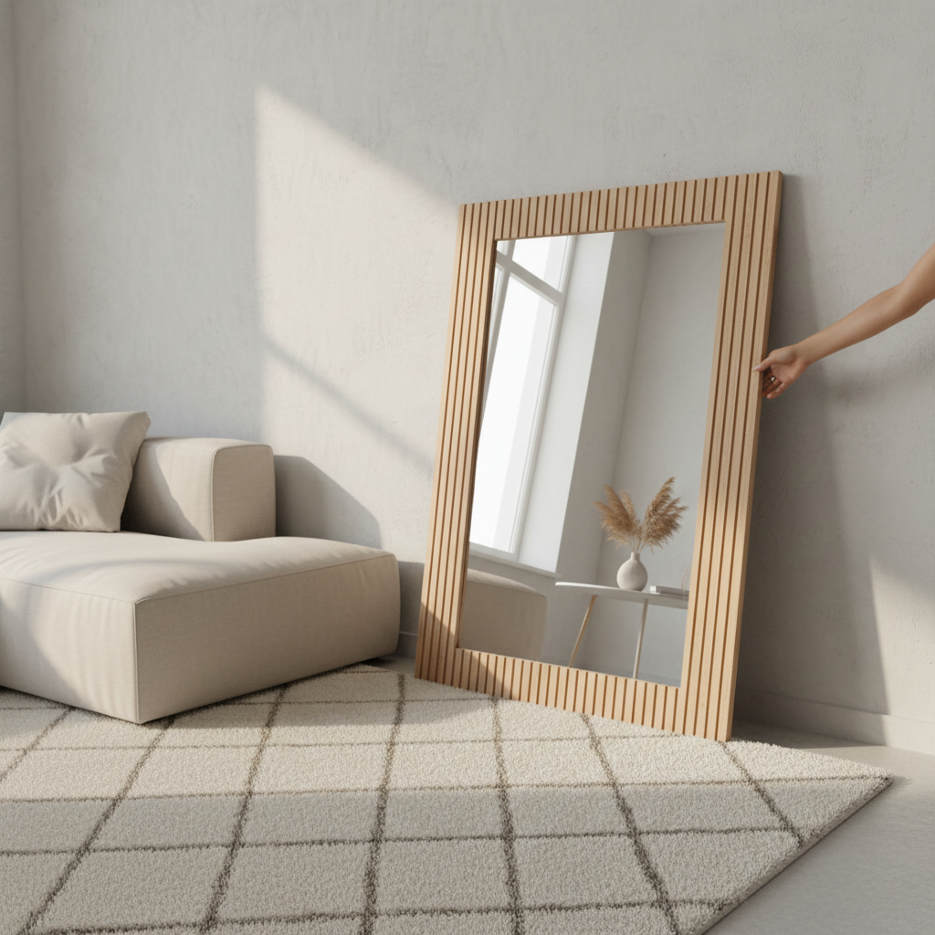 Nuestro espejo con marco varillado de fibro fácil combina diseño, calidez y funcionalidad. La estructura está hecha en MDF con detalle de varillas que aportan textura y estilo orgánico, ideal para ambientaciones modernas, nórdicas o naturales.