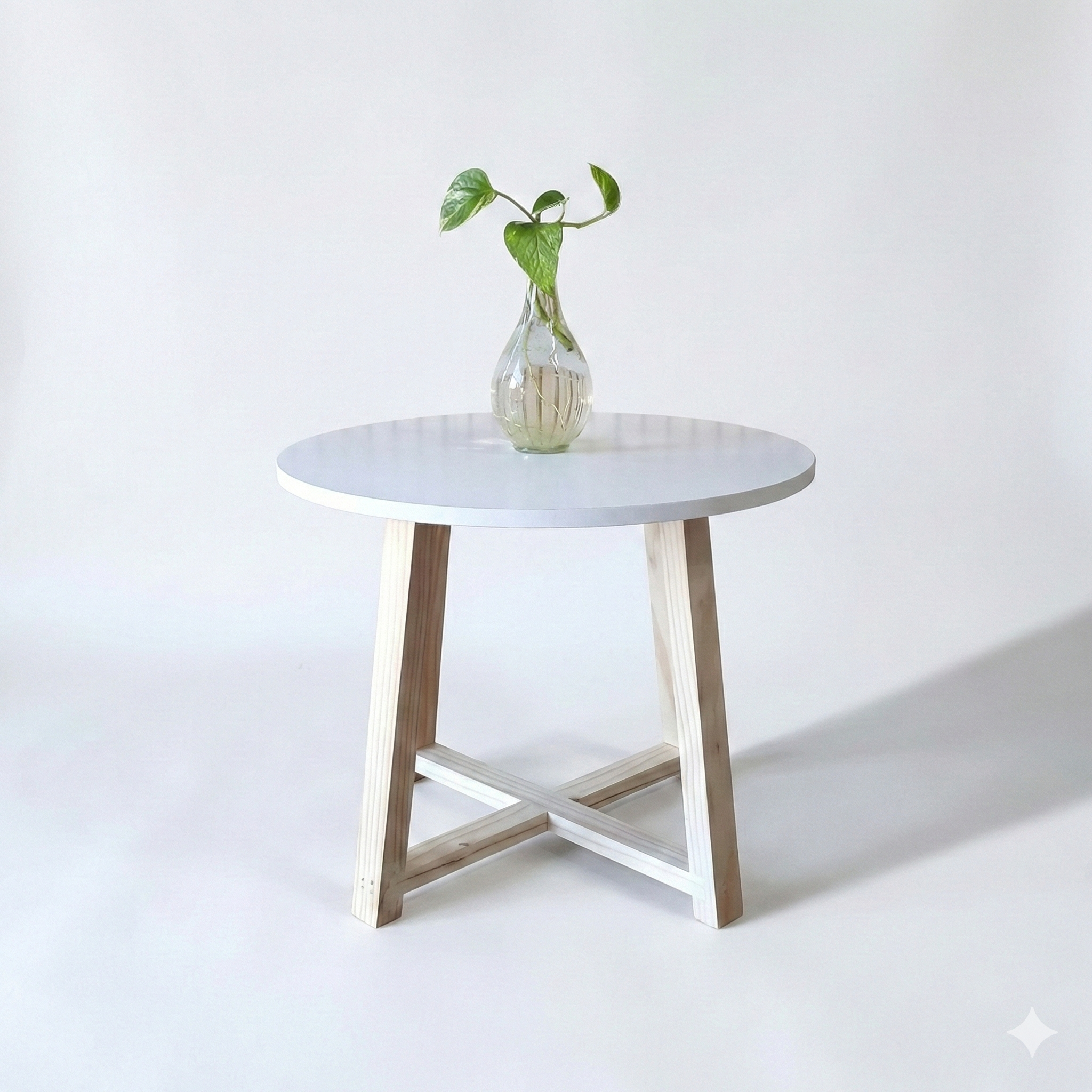 La mesa ratona redonda es un clásico que se adapta a todo tipo de ambientes. De líneas simples y estructura firme, es ideal para acompañar sillones o rincones de lectura. En madera cruda y melamina blanca. para que la termines como quieras.